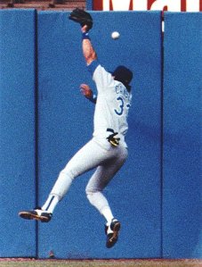 Ducks all-star firstbaseman, Kirk Gibson singled to right.