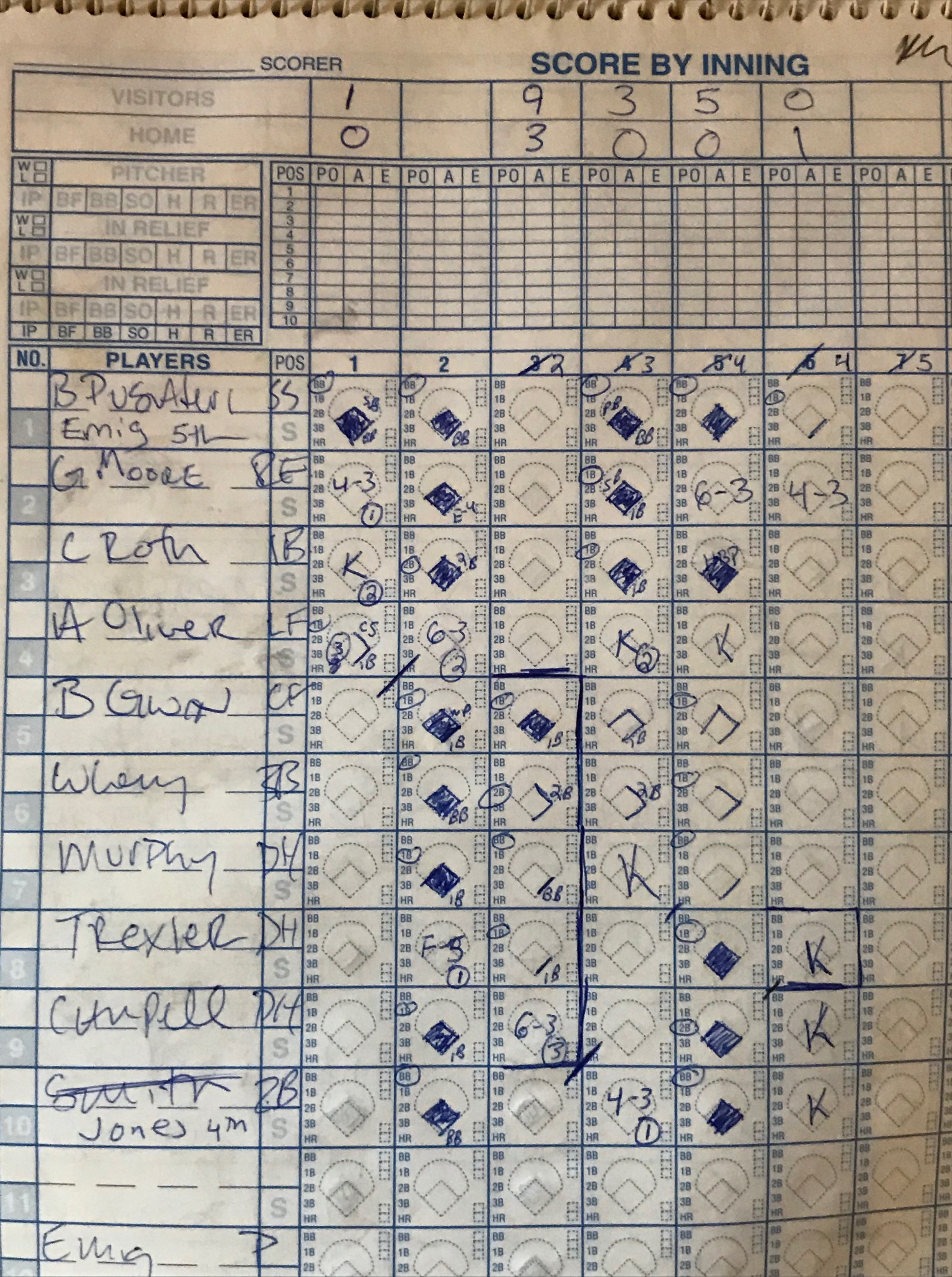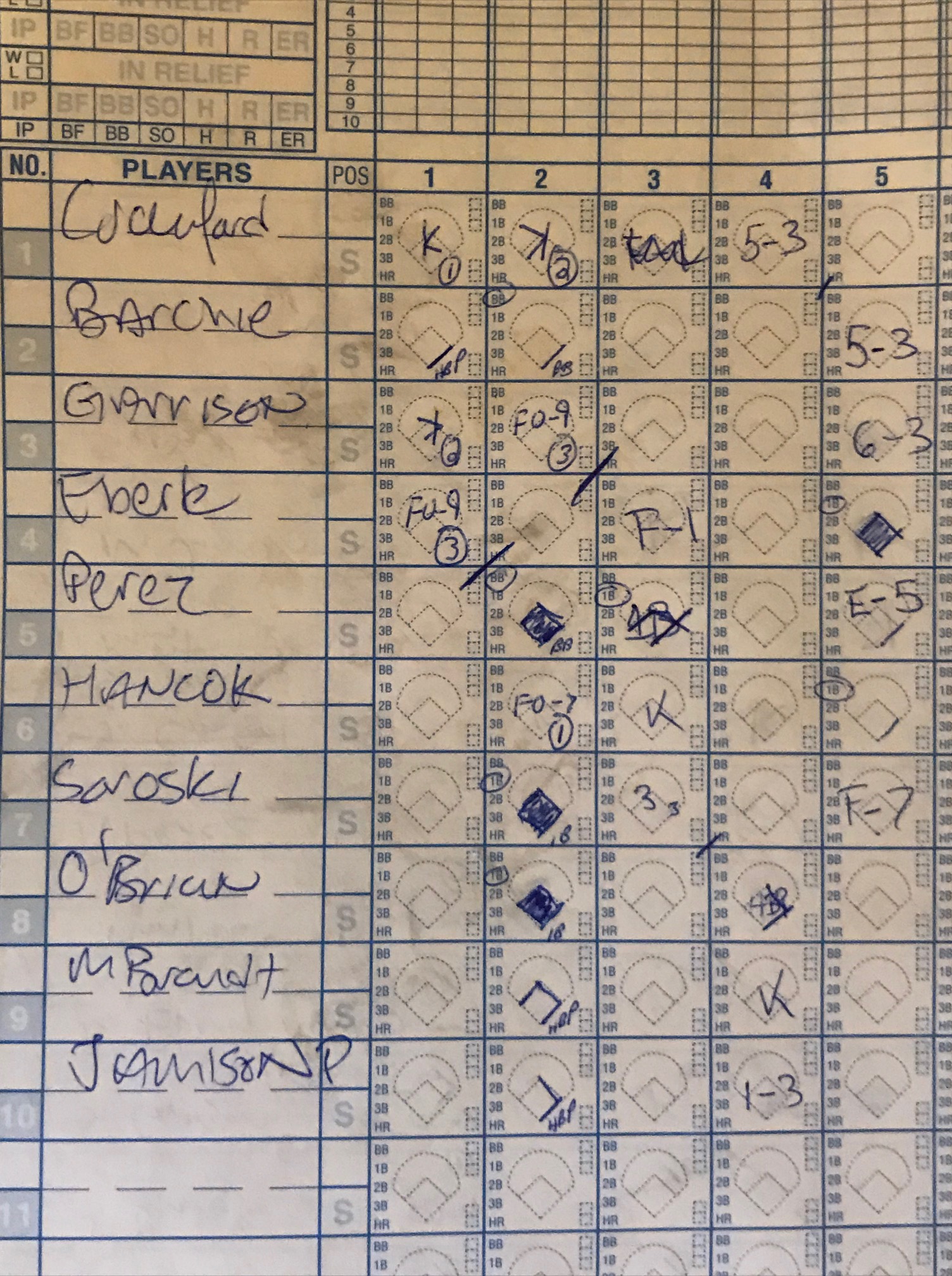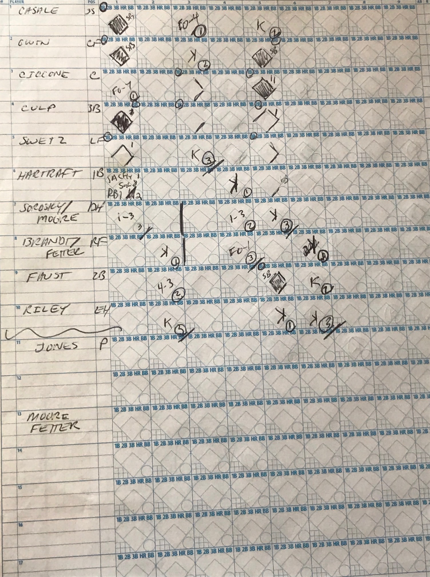 Here’s a random scorebook page from our illustrious 15 year history: