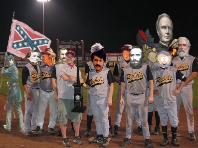 Above is Ray Finkle and the Rebels winning the ’07 title, lead by Jesse Jones, former Eagle. That Rebels team also had Matt Daulton, the first former minor leaguer in league history, I believe. They were an off-shoot of the Black Sox, one of several Black Sox splinter groups that formed over the years. Ex Sock, Dan Stell, who maybe hates me, played on that team. He left when they folded to join the Militia with Tremel. That Militia team featured a bunch of current Ducks.