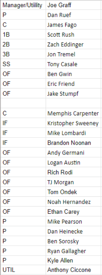 I am going to be honest with all of you reading this, managing is worse than I thought it would be, and I have to give all the kudos to Ben for getting this ‘organization’ through as many years as he did. In my opinion this year was a shit show, but maybe it was the best year for me to jump on and take the reins. I was lucky enough to have six or seven former managers on the roster, and although it shows our age a little bit, it gave me a lot of places to turn to ask questions. I don’t know if I could have lasted the year, or even have been willing to do it again without them.