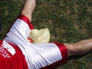Even the potty trained duck was duck enough to honor his pre-game wager.